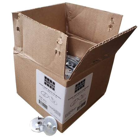 - 250 piece Box of 1-1/4" Tab Washers designed for use with 1-5/8" Screws to install the HYDRO BAN Board