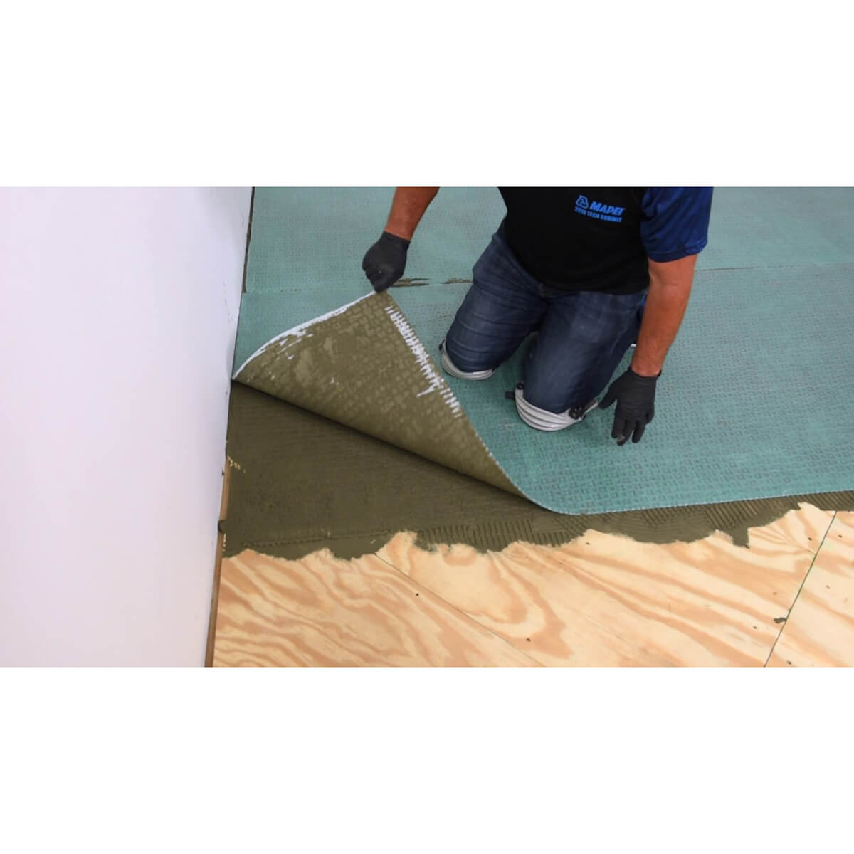Mapeguard UM Underlayment Membrane - 323 sq. ft. (30 m²) Roll by MapeiMapei's Mapeguard UM is a lightweight uncoupling mat for use under ceramic tile and stone installations and can also work as a waterproofing and vapor-pressure-equalizing underlayment. This versatile underlayment membrane can perform on the most challenging substrate surfaces, such as young concrete and single-layer 3/4" plywood floors, in both commercial and residential applications. The unique engineered tri-layered design of Mapeguard UM absorbs lateral stress from the substrate without transferring this force to the tile or stone, which maintains exceptional bonds. Features