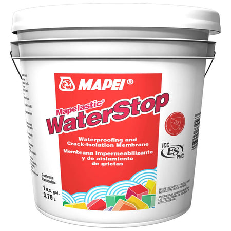 Mapelastic WaterStop is a flexible, thin, fast-drying, one-component, liquid-rubber waterproofing and crack-isolation membrane for installation under ceramic tile or stone in residential, commercial and industrial environments. No odor; great for confined spaces.