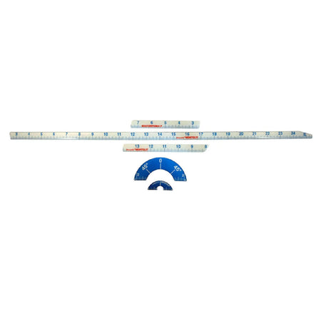 - Includes: inch tape for ruler guide (3 stickers) inch tape for arm extension (1 sticker) and a 45° inch tape