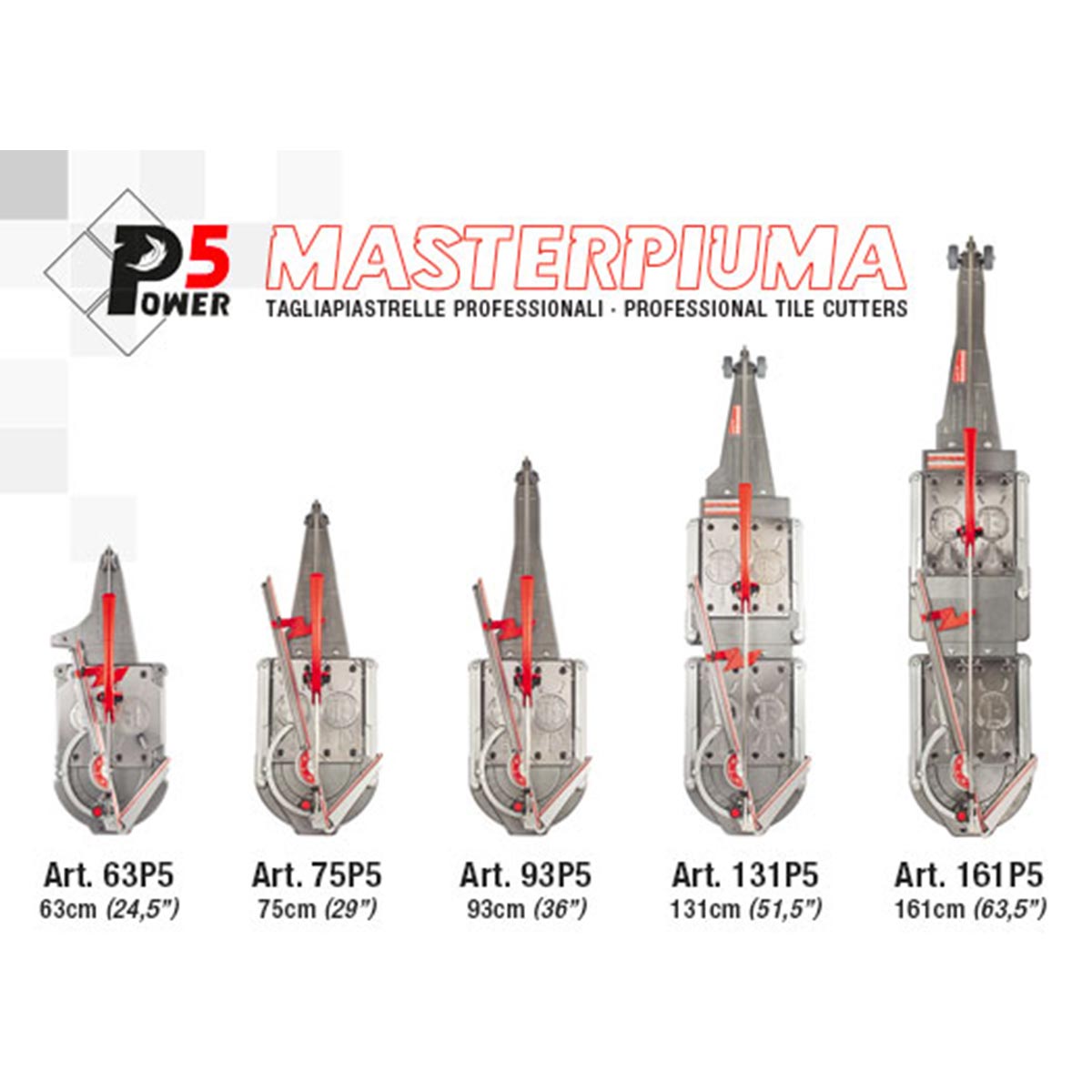Montolit Masterpiuma P5 Tile CutterThe new line of machines from Montolit, The Power 5 is based on the fundamental advantage of “All in One” (always ready for action!) and includes the distinctive characteristics that have made the Masterpiuma the worldwide leader in the field of professional tile cutters. Everything has been redesigned to tackle the most recent and innovative ceramic materials, including new formats of increasingly tough porcelain but also extremely delicate vitrified tiles; with a view to giving an overall improved performance! Features