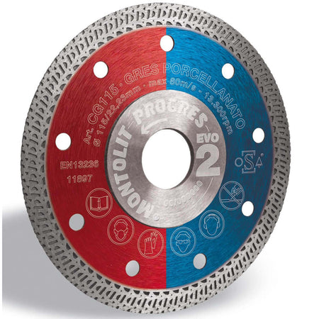 Montolit Progres CG Diamond BladeUnique diamond matrix allows for fast and smooth cutting while keeping the blade cool. It can cut all types of porcelain and ceramic tile. Features